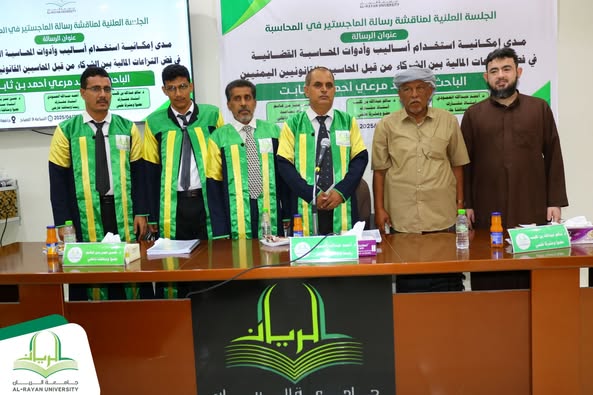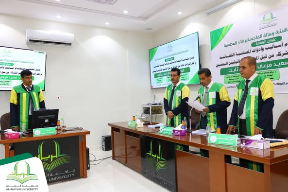 جامعة الريان.. مناقشة رسالة الماجستير للباحث سعيد مرعي بن ثابت في تخصص المحاسبة