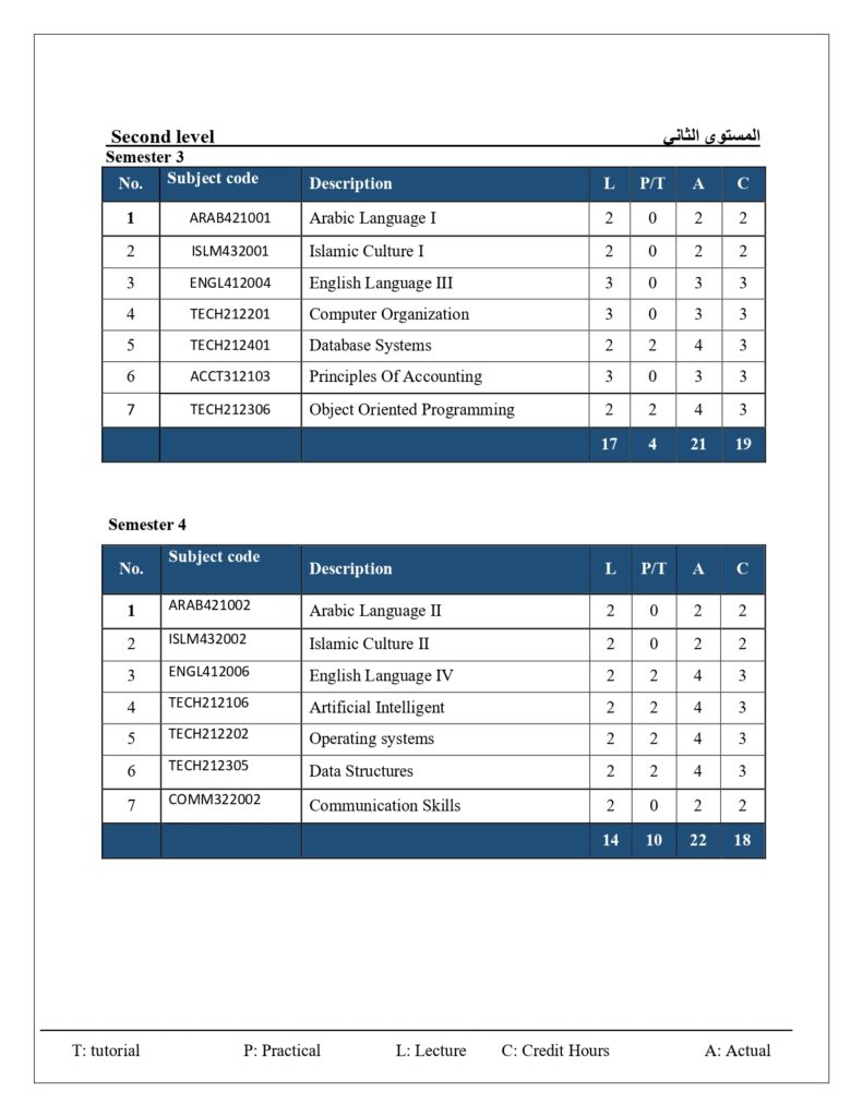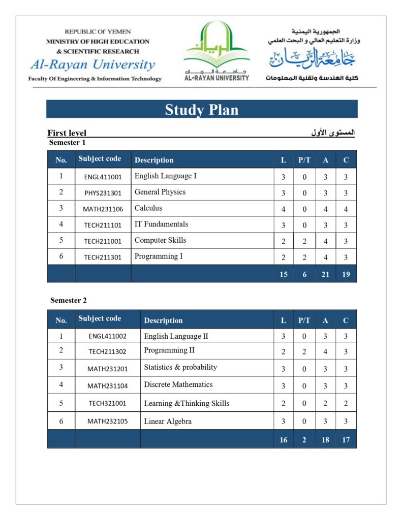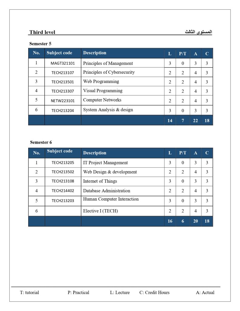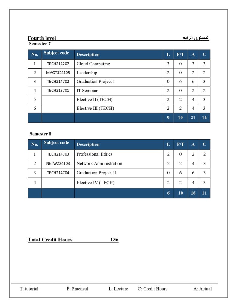 الخطة الدراسية لقسم تقنية المعلومات